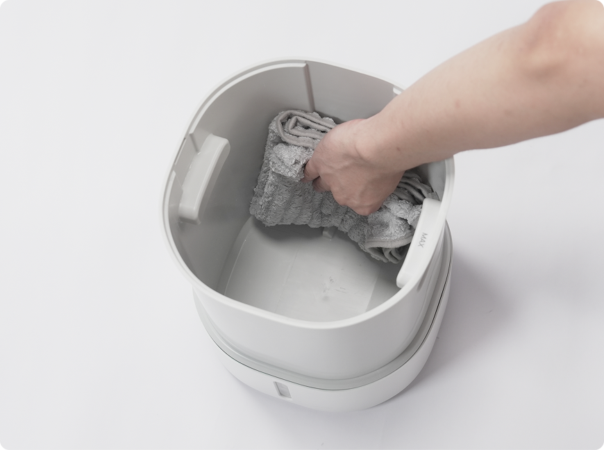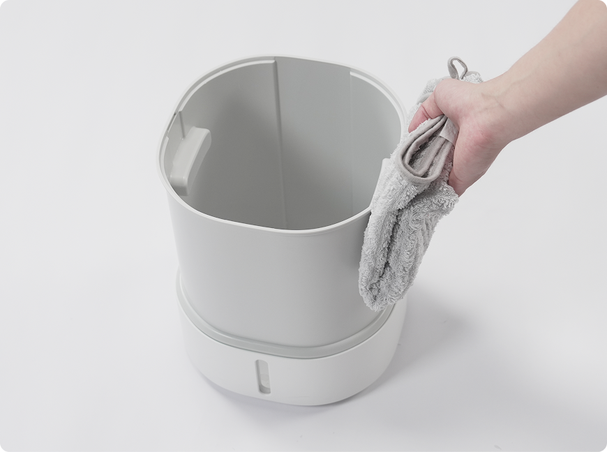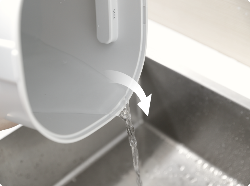 Pour out any water from the tank. Wipe the water tank with a soft, damp cloth.