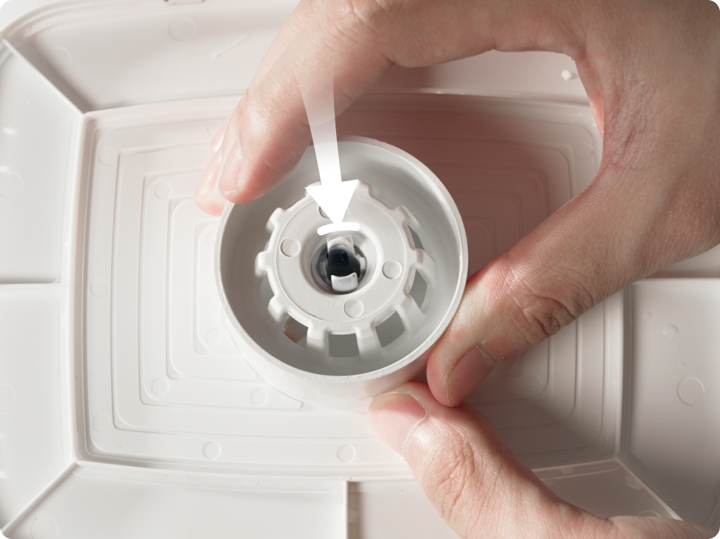 Remove the droplet collector in the water inlet tank. Then clean it with the cleaning brush. Rinse the water inlet tank.