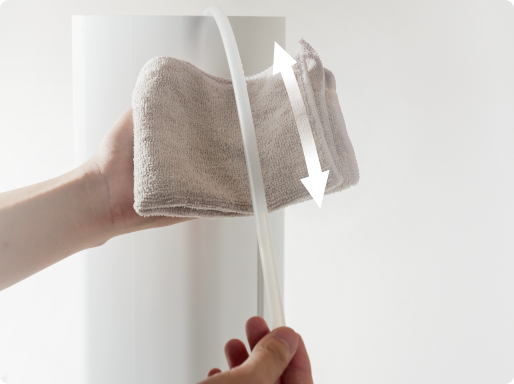 Wipe the water tube with a soft cloth. Then clean the cartridge with the cleaning brush.