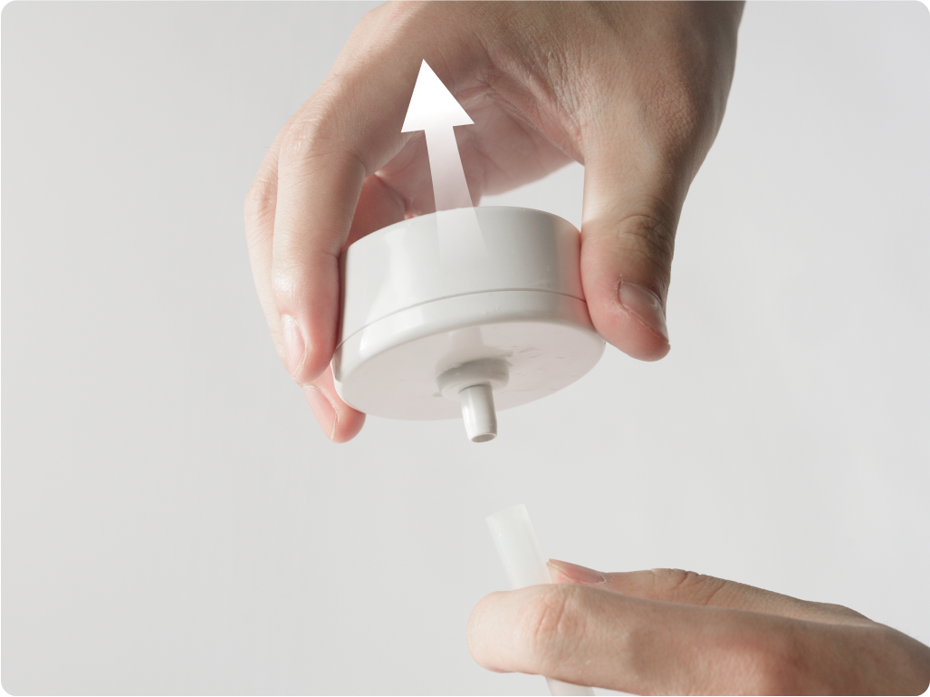 Turn the top cover over. Push the nozzle from the narrow end to remove it. Then take it out from the cover.